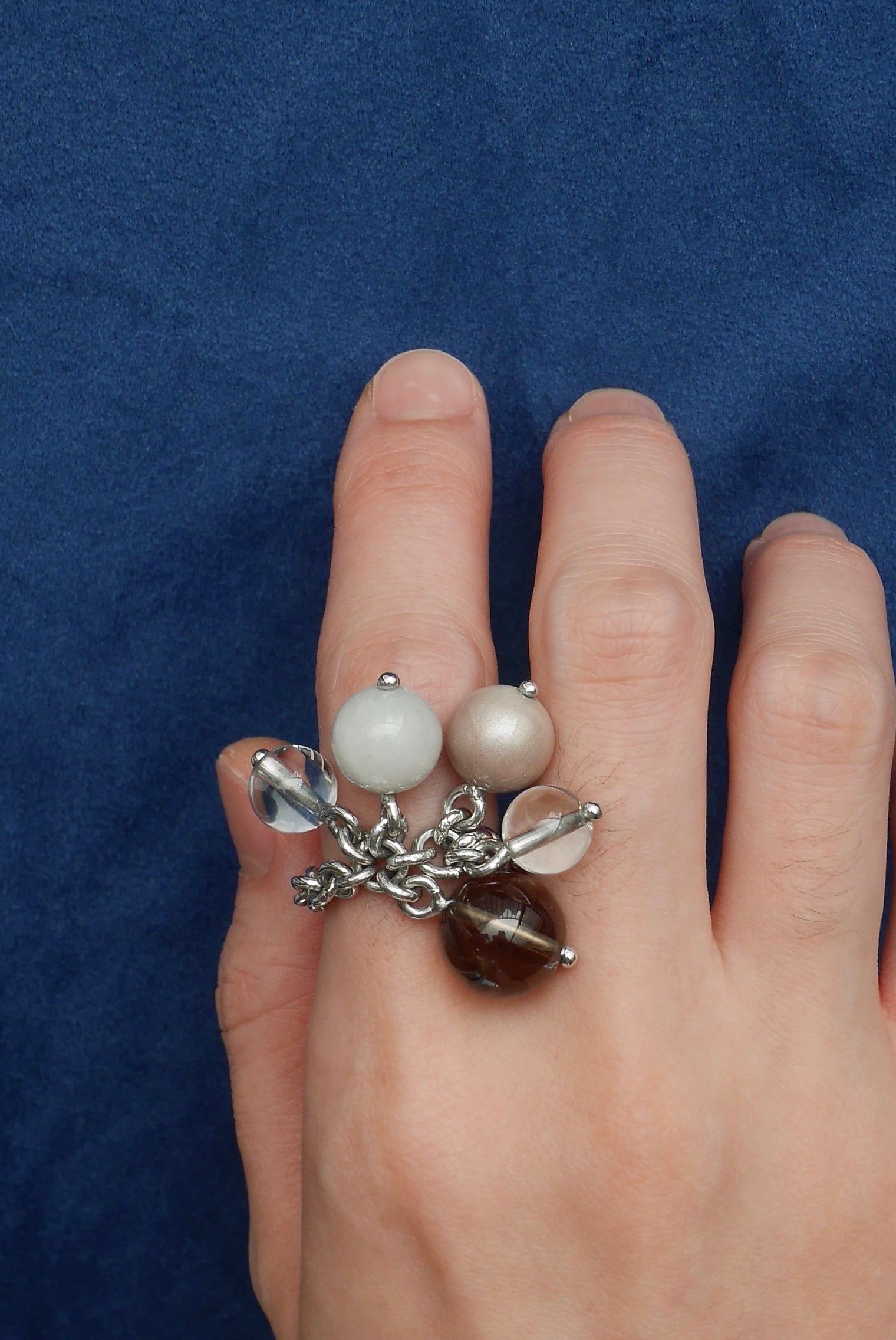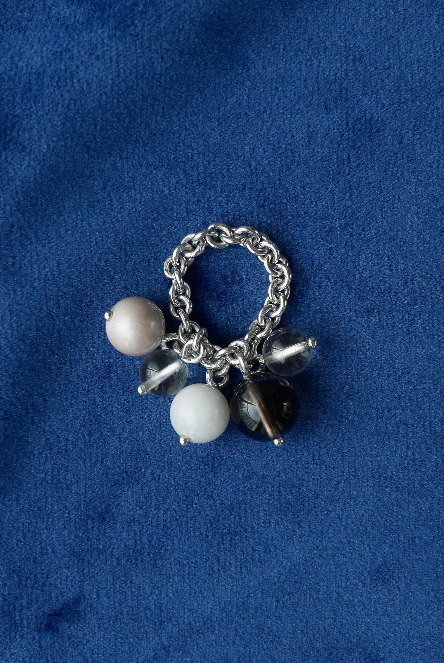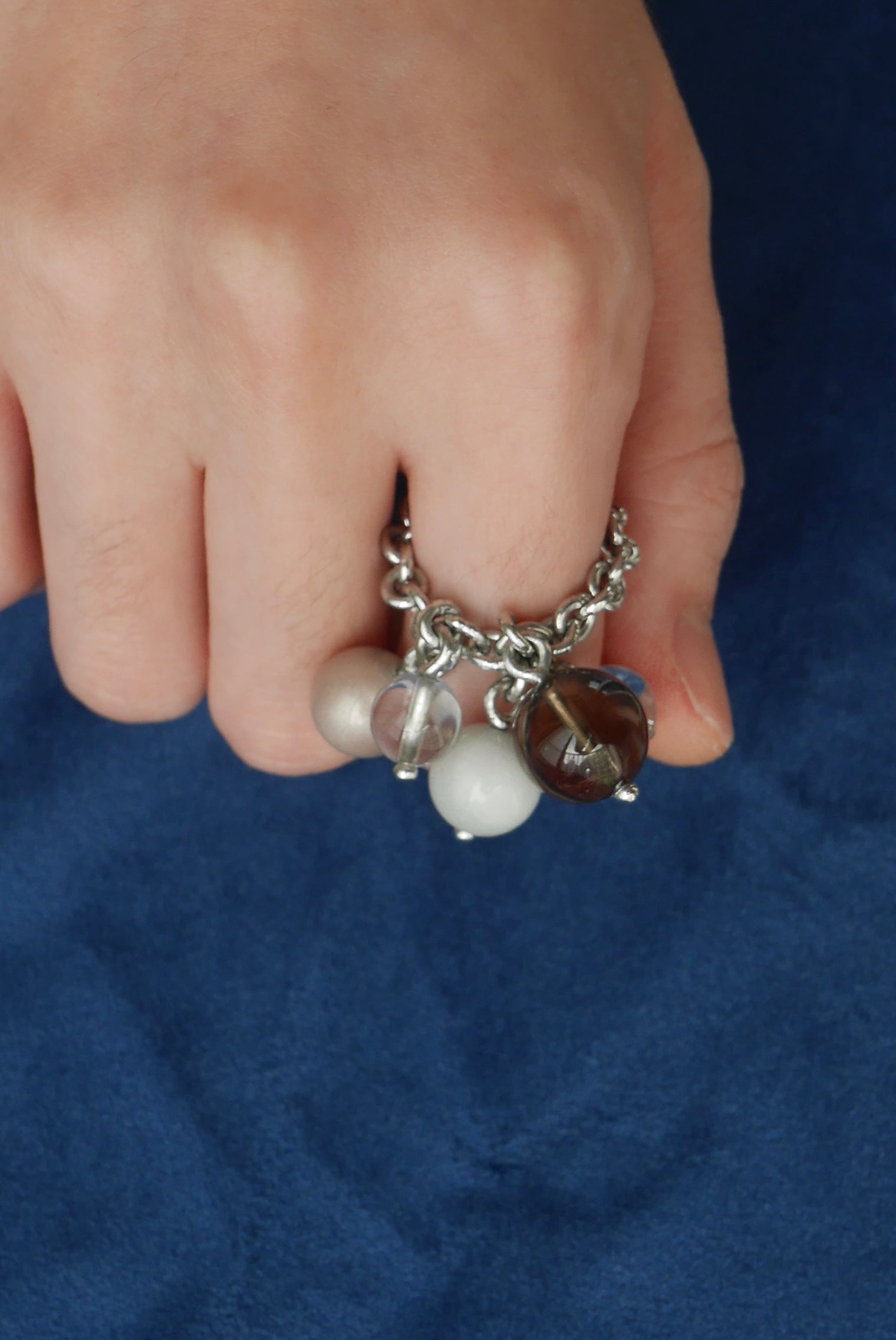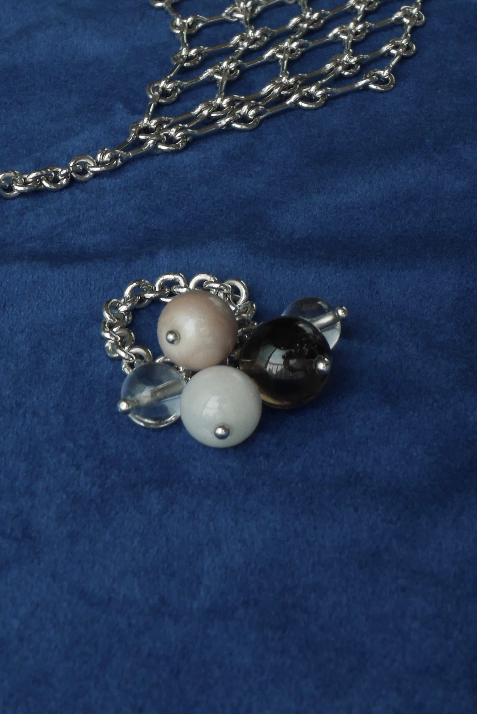 주석 80 스털링실버 20 합금, 천연백수정 8mm, 스모키퀄츠 12mm, 백옥 10mm, 옥진주 10mm