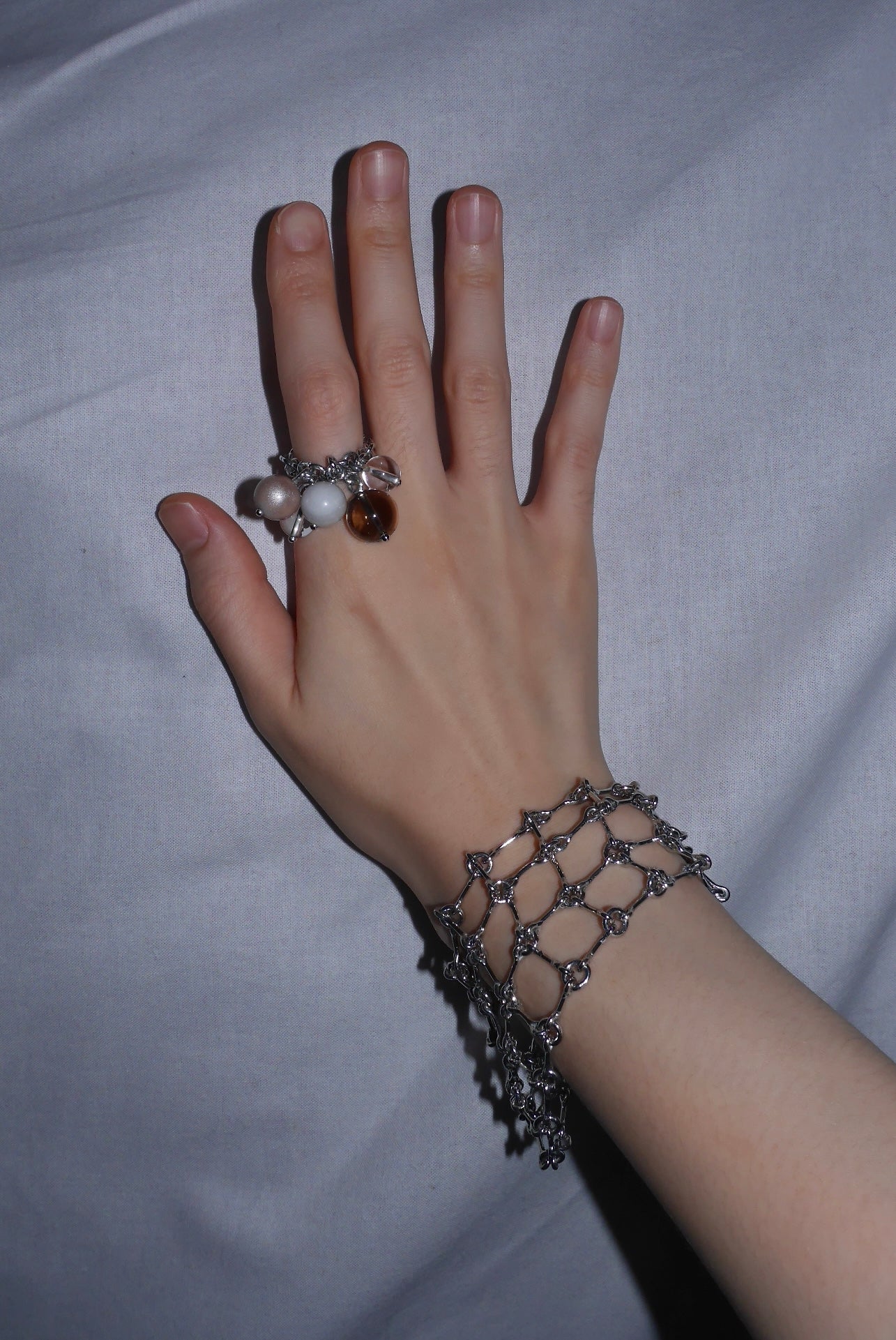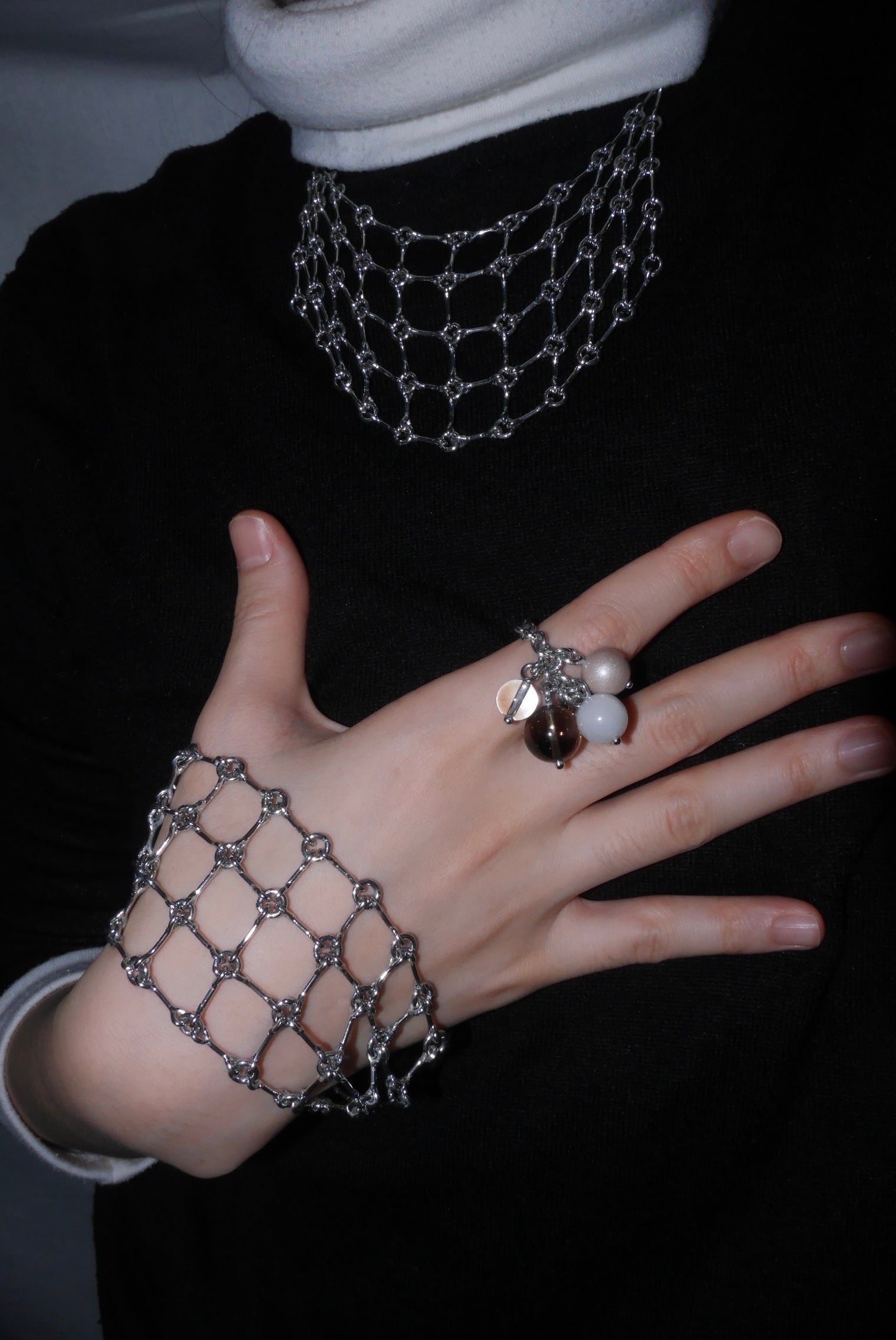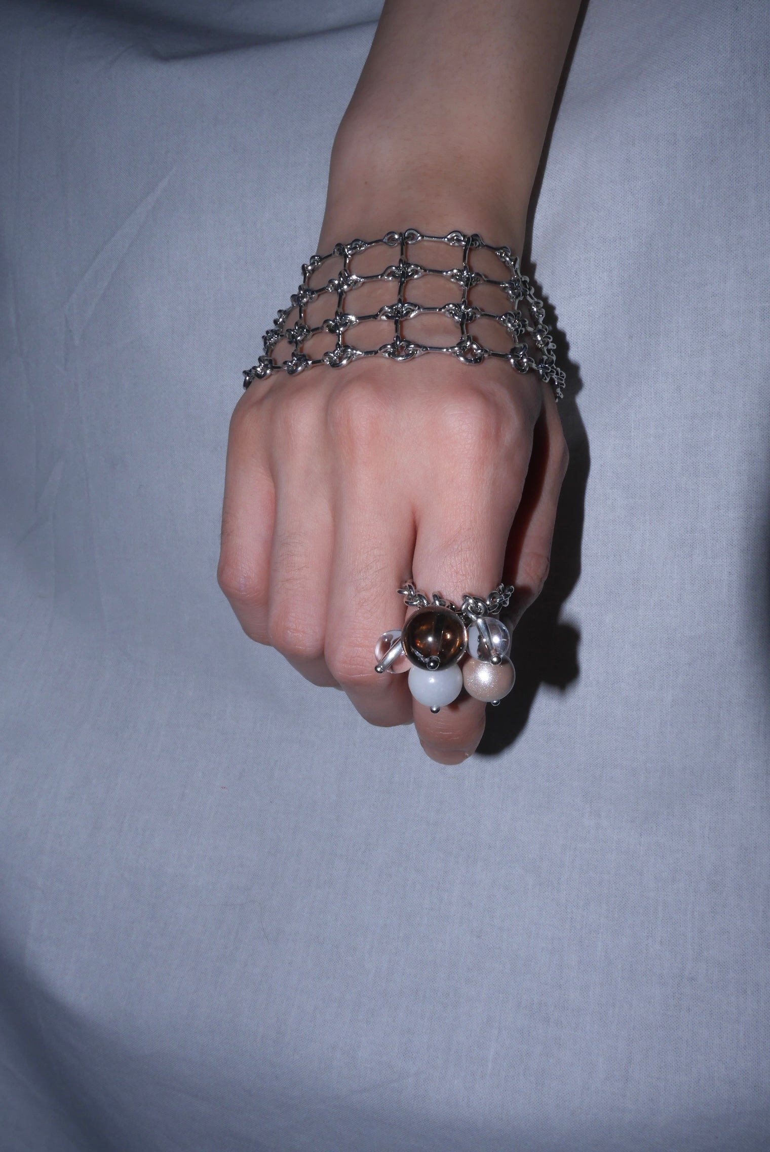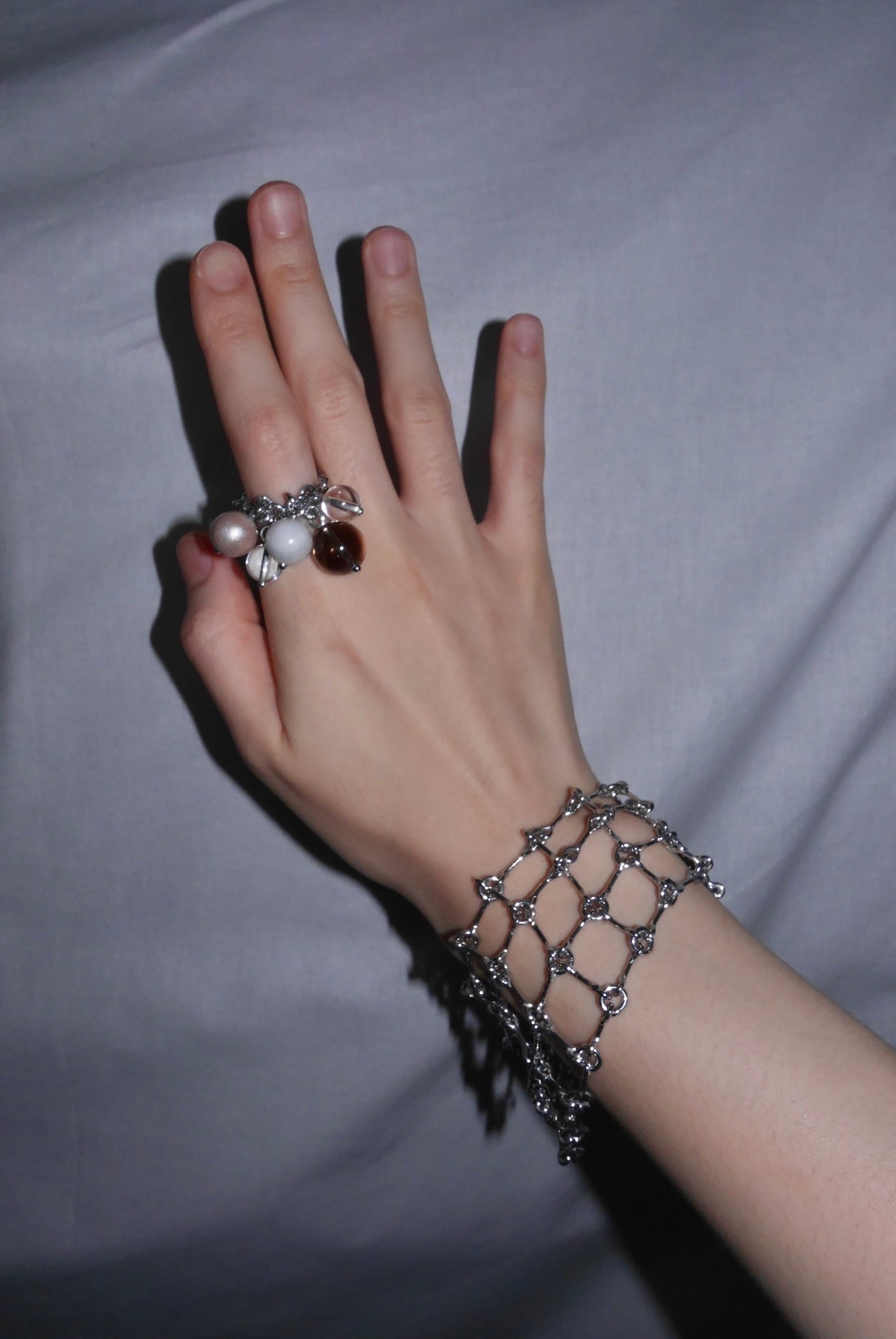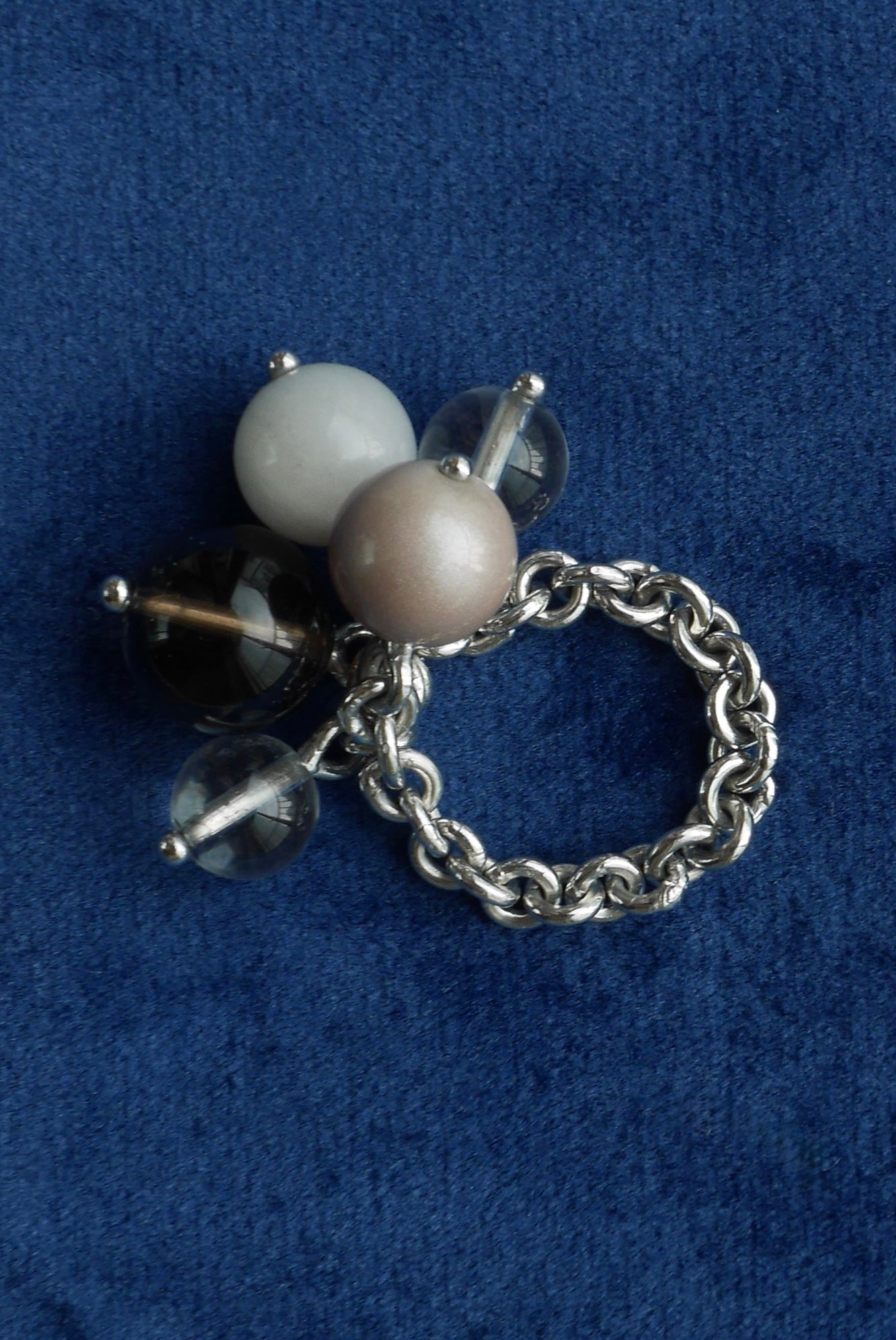 주석 80 스털링실버 20 합금, 천연백수정 8mm, 스모키퀄츠 12mm, 백옥 10mm, 옥진주 10mm