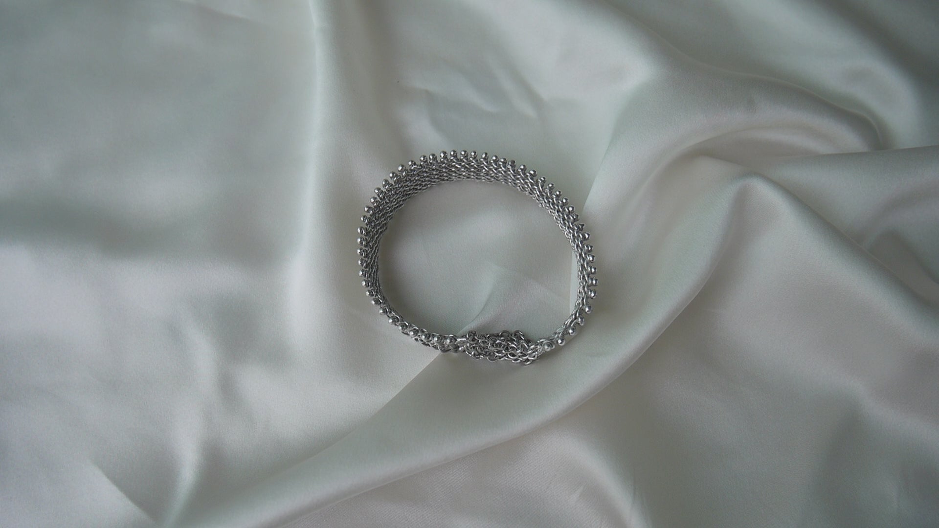 금속 선을 뜨개기법으로 엮어 유연성을 가집니다.
